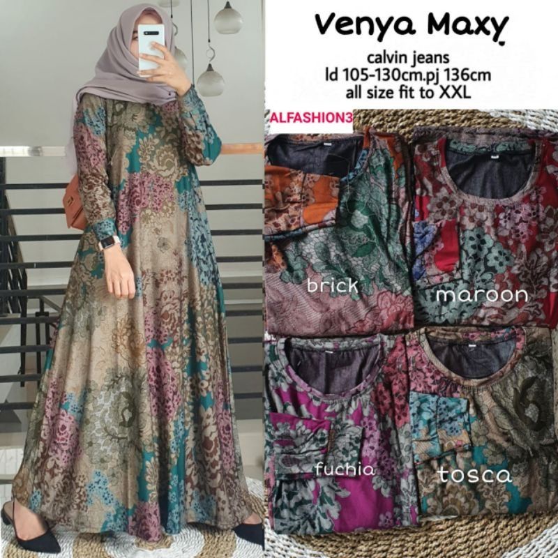 Name: Venya Maxy Baju Gamis Batik Terbaru Modern Kekinian Bahan Calvin Jeans Ori Ld 105 Melar Sampai 130
