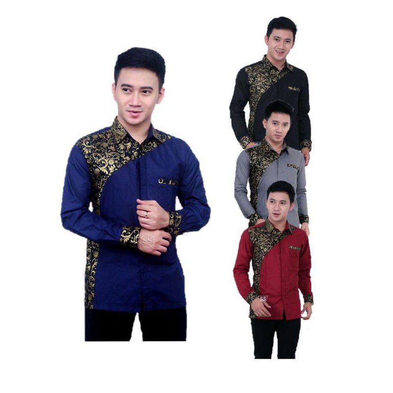 Name: Kemeja Pria Kasual Lengan Panjang Model Clurit Kombinasi Batik
