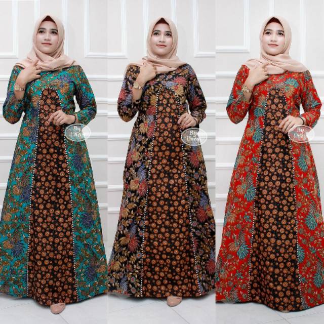 Name: Gamis Batik Modern Murah Katun Halus Kombinasi Truntum, Ori Batik Aksara Pekalongan Big Size Jumbo